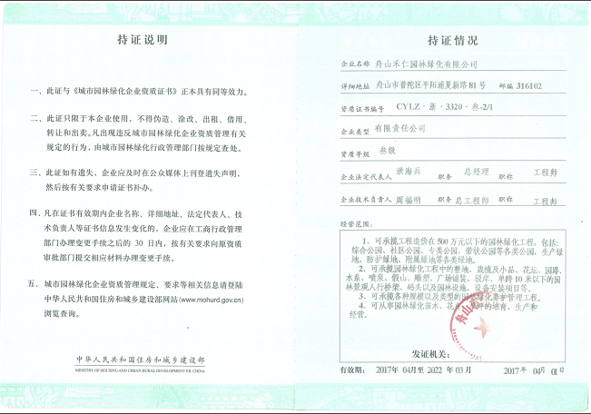 园林绿化资质证书