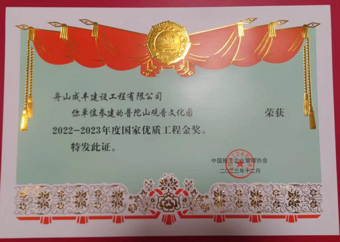 普陀山观音文化园荣获2022-2023年度国家优质工程金奖